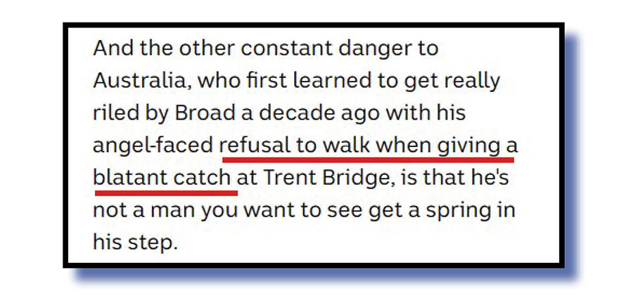 It’s all pretty damning, isn’t it? How dare Broad REFUSE to walk after giving such a BLATANT catch.