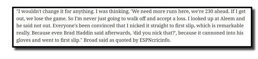 The basic truth is that Broad edged behind and the ball grazed the keeper’s gloves before flying to first slip.