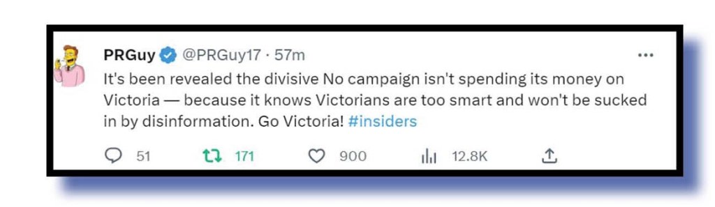 PRGuy backed his fellow Victorians to do the right thing while Hardy World saw more than just the one positive in a Yes vote come October.