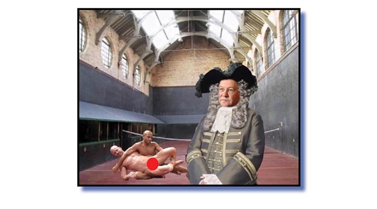“Not only will it host royal tennis matches but it will double as the venue for wrestling which I will be insisting should take place fully naked in the true Greco-Roma tradition,” he added, pointing to two Pout House under-footmen demonstrating their own sporting skills.