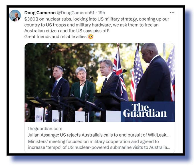 And did we hear our own Foreign Minister Penny Wong correctly with her response? Words that we’ll paraphrase as “Well, we gave it out best shot to get Assange out of the UK jail he’s rotting in but we won’t be bothering with that nonsense anymore, Sir! We’re happy to let him rot in one of your jails instead, Sir!” We can’t confirm whether a snappy salute followed those words.