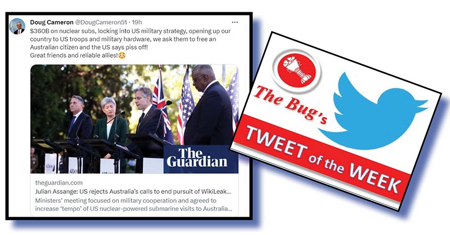 And did we hear our own Foreign Minister Penny Wong correctly with her response? Words that we’ll paraphrase as “Well, we gave it out best shot to get Assange out of the UK jail he’s rotting in but we won’t be bothering with that nonsense anymore, Sir! We’re happy to let him rot in one of your jails instead, Sir!” We can’t confirm whether a snappy salute followed those words.