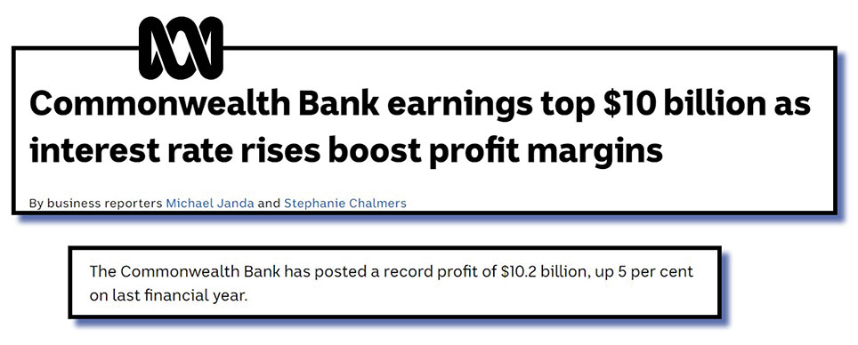 But here’s our beef with a recent ABC yarn about record profits from the Commonwealth Bank.