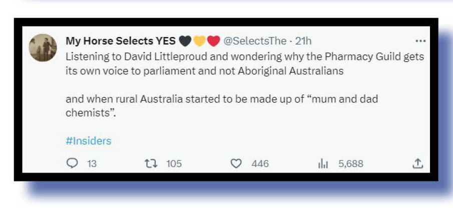 But our tweets-of-the-week judges really did like the Twitterverse’s various reactions to David Littleproud’s amazingly vacuous appearance on ABC’s Insiders on Sunday. And, no, they’re not even talking about his most amazing achievement on that program: how he masterfully blew out of the water any hope Opposition Leader Peter Dutton might have had in convincing people to vote No in The Voice referendum because his mob would support a legislated Voice.