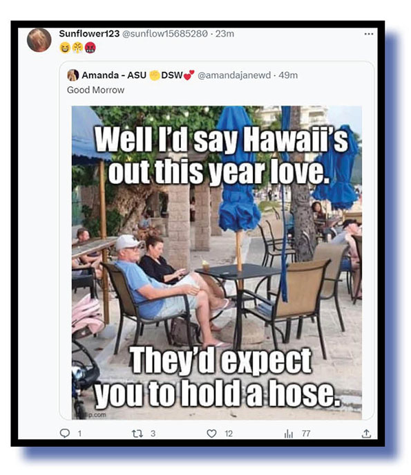 But before we go, let’s have a chuckle from Sunflower123, passing on a tweet from Amanda, etc, etc. As usual with memes, we’re not sure of the creator of this one, but well done, you!