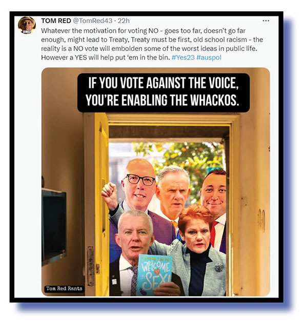 ….while TOM RED reckons much of the No argument is a binable offence and Michael clearly spells out the basic difference between the two sides of The Voice argument.