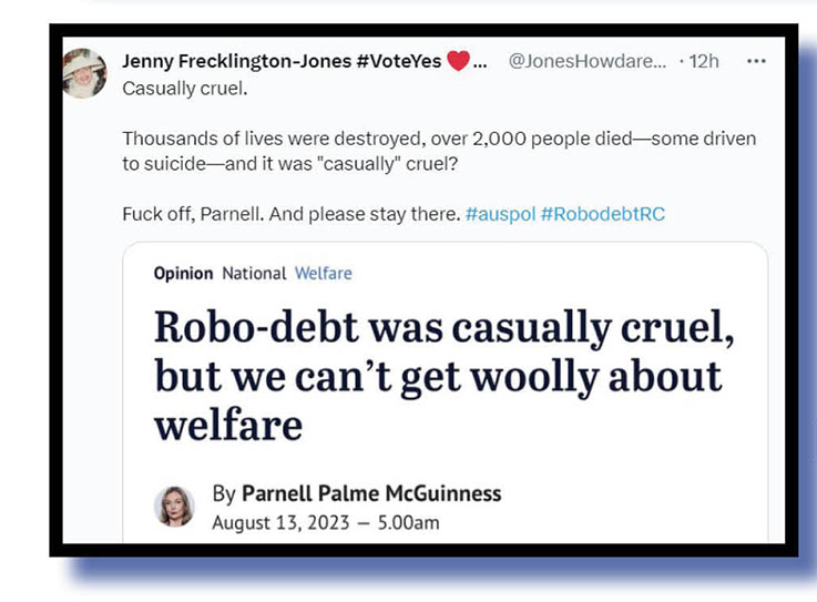 At top and below is Jenny Frecklington-Jones #VoteYes etc’s response to that column…