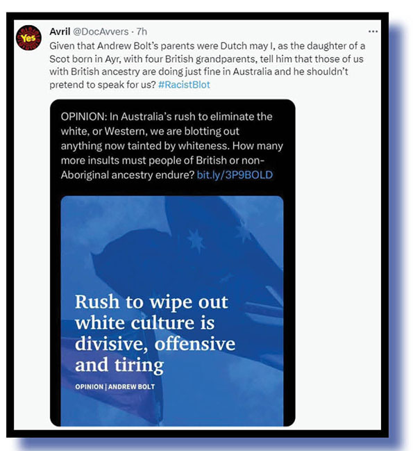 … and Avril simply could not let a recent piece of racist Andrew Bolt rubbish pass by without a full-frontal assault. By the by, this stink piece from Bolt has already been declared the winner of The Bug‘s Media Glass House Arse-Licker for August trophy. It’s breathtakingly stupid.
