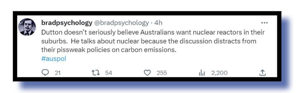 On general political issues, Doug Cameron and bradpsychology had matters nuclear in their sights…