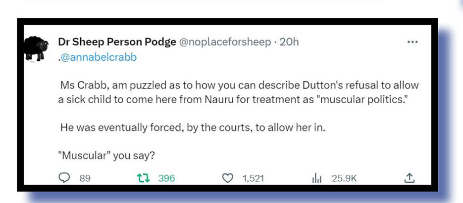 Dr Sheep Person Podge and Peter Murphy also chimed in on the new series and found fault with the host’s use of a certain word to describe the politics of Peter Dutton.