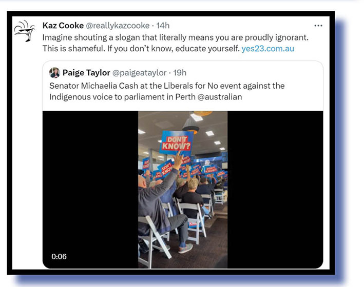 Okay, we’ve only got some eight weeks left before we potentially show the world how racist and stupid we are, so here’s some observations of a couple of Voice referendum No forums over the weekend.