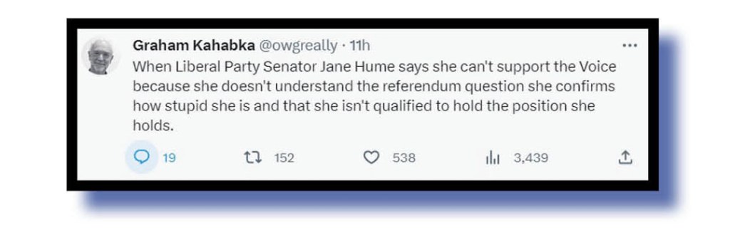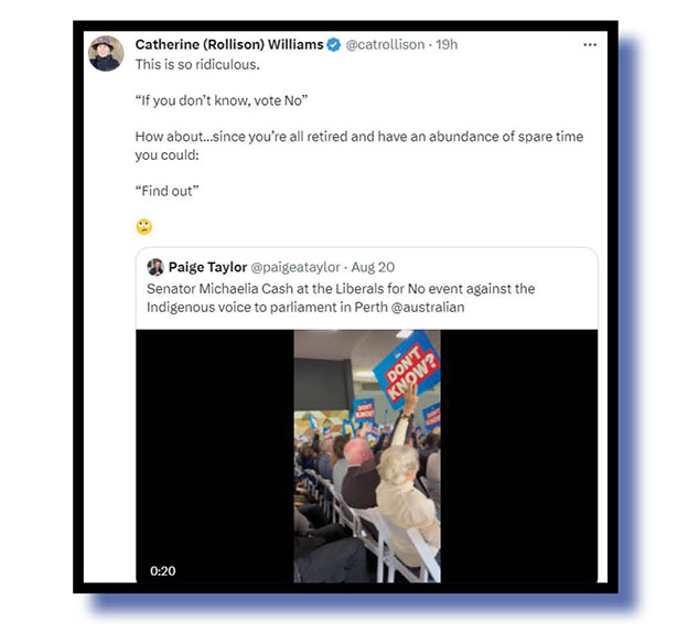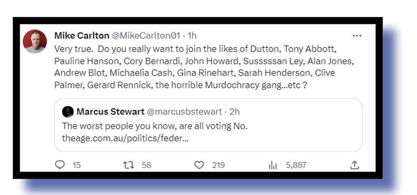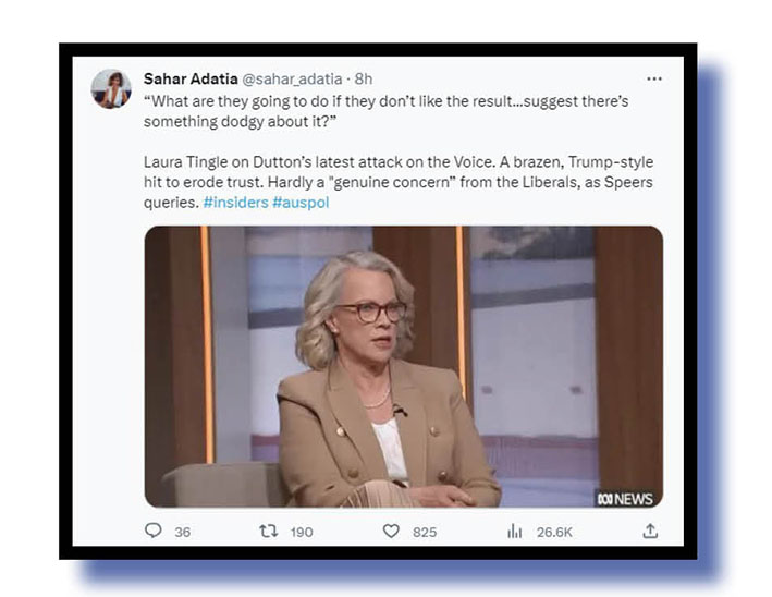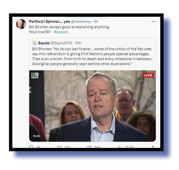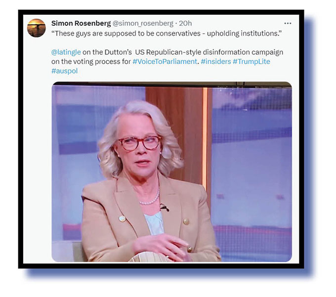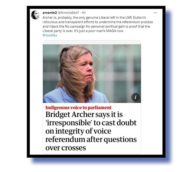 Of course, trying to portray The Voice as too complicated/evil/elitist/racist/unAustralian to bother with was again front and centre when current Opposition Leader Peter Dutton got both cross and ticked-off with the Australian Electoral Commission, trying to find some evil intent in a ballot-counting process that’s been part and parcel of any referendum process for yonks and which they happily ticked off for this particular exercise in double-majority democracy. Muddy the waters. Create confusion no matter how stupid you might look in the process. Very Trumpian.