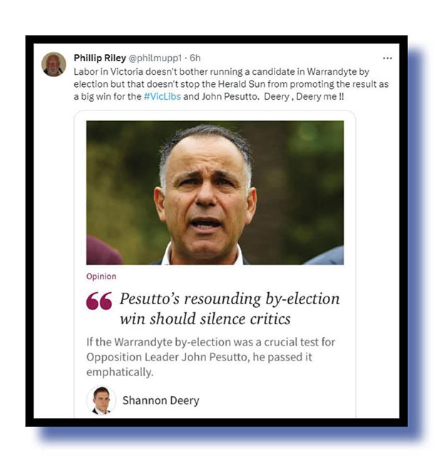 Onto state politics and our Xcreta judges really like the reactions from some of our regular Twi… sorry … Xs/Xers… to the way the mainstream mediocre overplayed a Liberal win in a by-election last weekend.