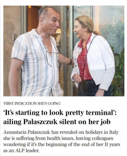 The MGH particular salutes The Oz for its clever use of the word “terminal” seeing the Premier had admitted to some health issues. Wishing thinking on the national broadshit’s part?