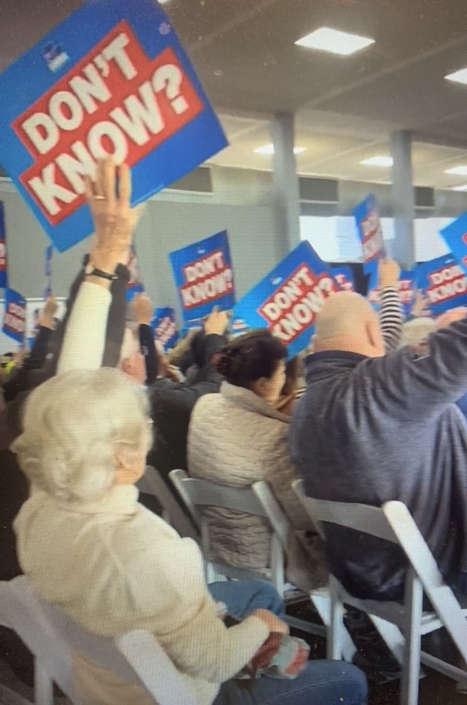 It was pitched at an audience very much like the brain-dead elderly Liberals at that Perth meeting the other day, shouting “Don’t know? Vote No!” over and over again under the baton of head screecher, the braincell-challenged Michaelia Cash.