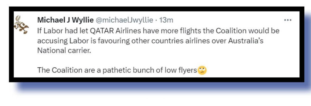 And last but not least Michael J Wyllie shot down the Coalition over that Qatar business. This road-running hunter is clearly not an LNP fan.