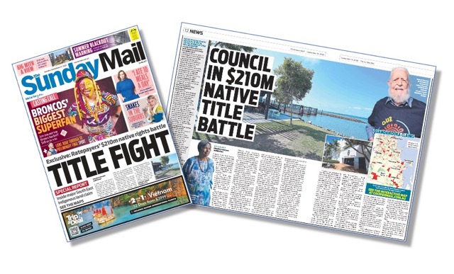 As a Redland Bay resident I was fascinated by a front-page story yesterday in the weekly News Crap Australia turdbloid The Sunday Mail that canvassed the legal arguments currently under way as part of a native title claim made by representatives of Aboriginal people in the Redlands area. (below)