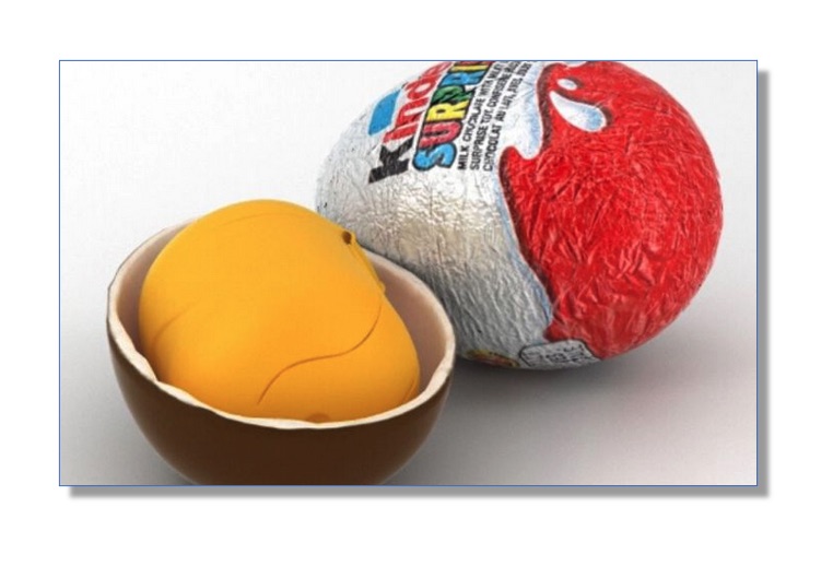 For those who clicked on the item and opened up the actual story, the big revelation was all about the popular chocolate treat Kinder Surprise – the one that’s shaped like an egg and contains a small toy that itself is safely wrapped up inside.