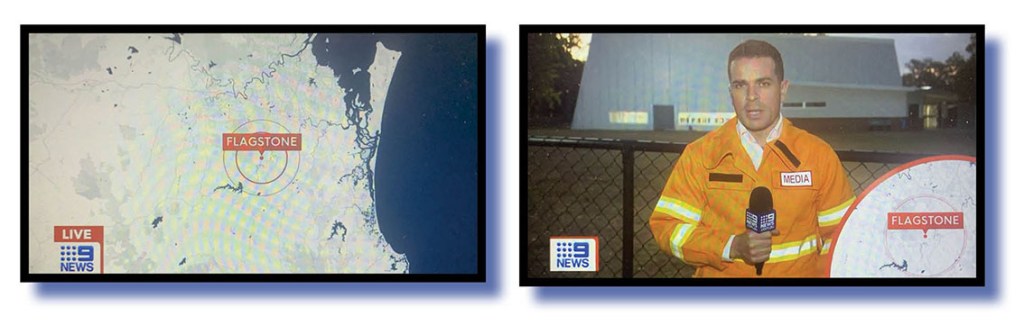 And have there ever been better examples of the absurd, stupid and meaningless nature of this “feature” than the first two stories from Nine Network’s Brisbane newsroom last night – from Flagstone north of Beaudesert during a bushfire treat and from the Princess Alexander Hospital on Brisbane’s southside after a police officer was accidentally shot in the neck at a firing range.