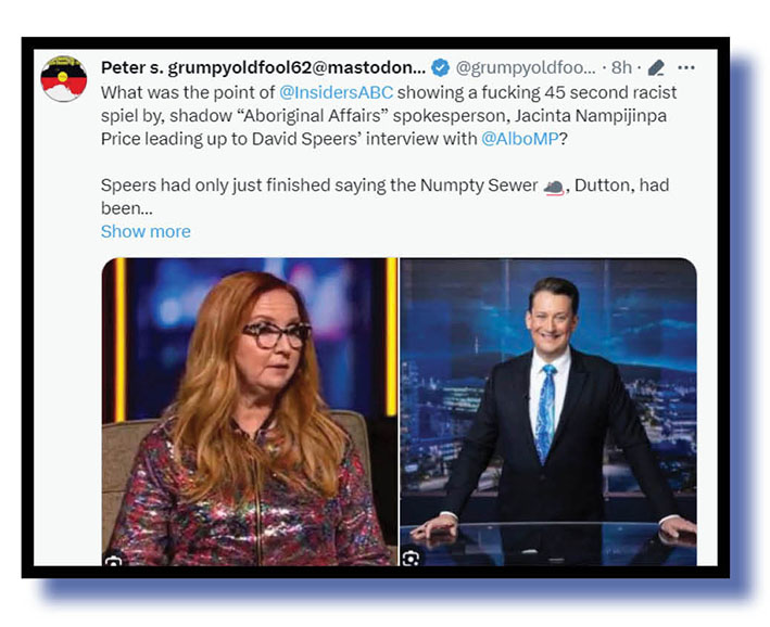 Here’s Peter s. grumpyoldfool62 etc on that exact point, and we forgive him for mixing up future Australlian prime minister Jacinta Price with Thorpe. Both are interchangeable and with their rubbish No stands are badly letting down their first Nations mob. Peter s., we got James Campbell and James Morrow mixed up yesterday. Sometimes it’s easy to mix up LNP publicists!