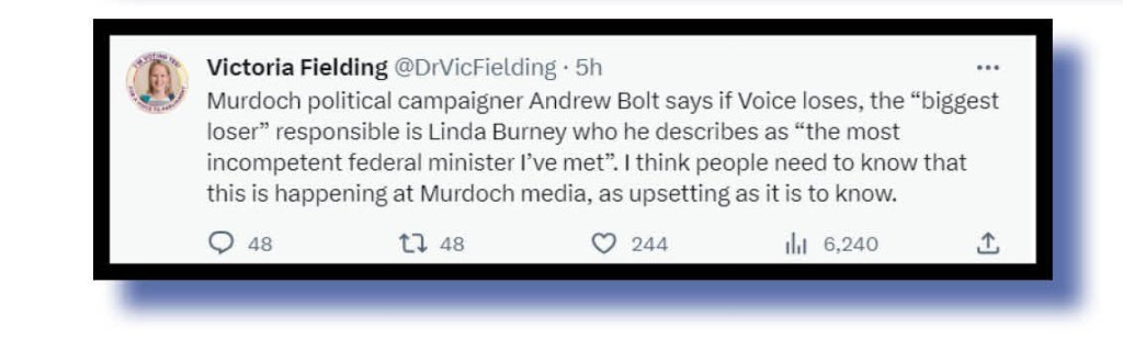 Before we leave Seven’s effort this morning – and we understand Kerry Stokes has already approved a substantial payrise for Ms Barr – let’s remind ourselves of another example of the network’s sterling, balanced, professional brand of quality journalism displayed throughout the Voice debate.