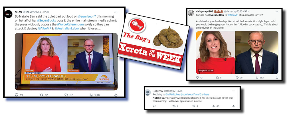 As this is the last Xcretas-of-the-Week column before the Voice referendum, our Xcrement judges have loosened the rules and allowed in some Xcreta comments from this morning. Yes, hours after our normal Sunday midnight deadline for clearing our Xcreta barrel!
