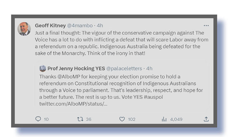 If the polls are right and today’s Voice proposal is dead, buried and cremated, The Bug accepts that running some of the latest Xcreta on the issue won’t change one fucking thing!