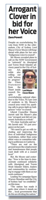 Further north in Sydney, Murdoch’s daily turdbloid The Daily Telegraph was using similar tactics, yet again, against Sydney Lord Mayor Clover Moore.
