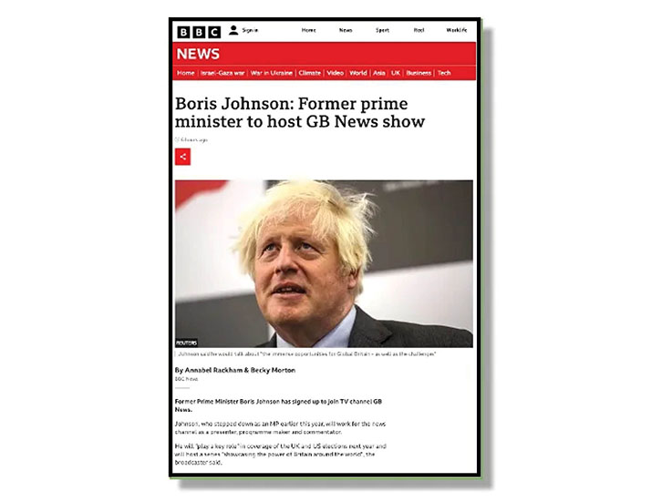 News has broken of plans to have former British prime minister Boris Johnson host his own program on right-wing nationalistic UK television, radio, and online news channel GB News. (main picture)