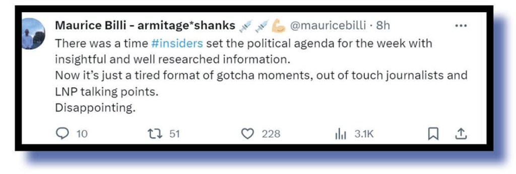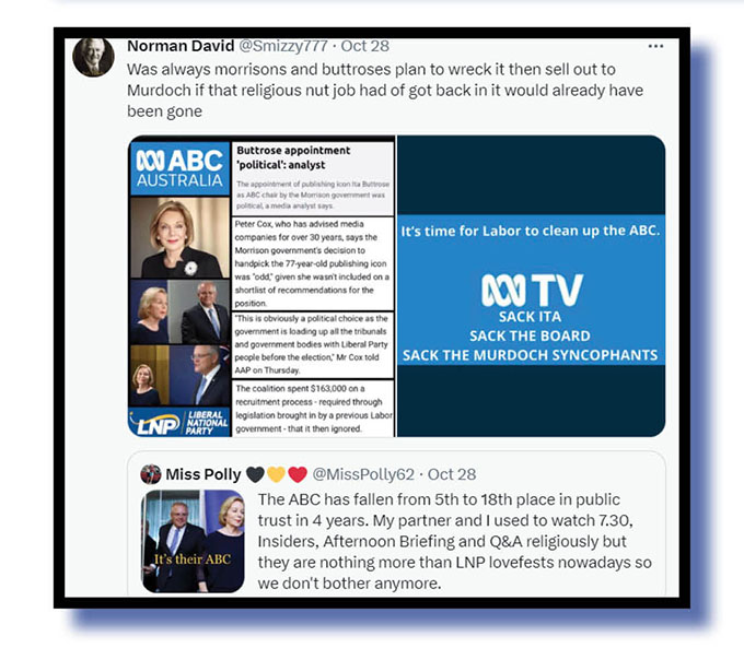 Our once greatly admired Australian Broadcasting Corporation got plenty of stick this past week, with Norman David responding to Miss Polly’s X post reflecting on some polling that has shown Aunty slipping badly in terms of public trust over recent years.
