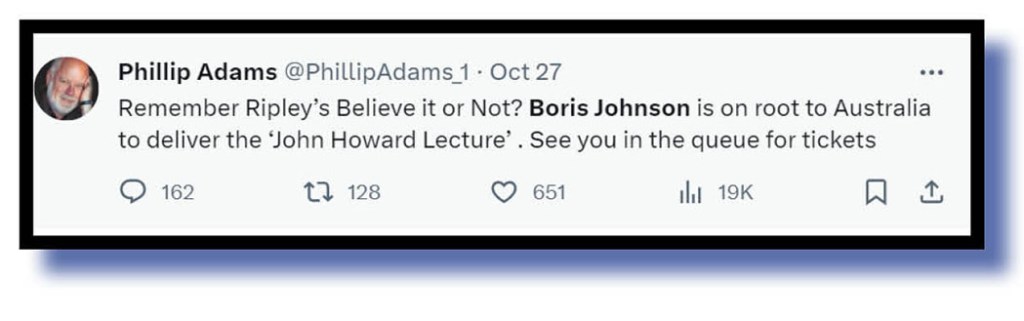 Let’s end with a hodge-podge of general Xcrement flung about this past week. Take it away, Michael J. Wyllie, Grant Curran. Angry Sewer Rat, Phillip Adams, MFW and Richard Denniss!
