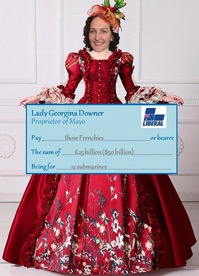 “I am especially keen to defend my dear darling daughter Lady Georgina who was unfairly pilloried for daring to hypothecate such funds to good causes in her many past campaigns to take her rightful seat in our federal parliament. (below)