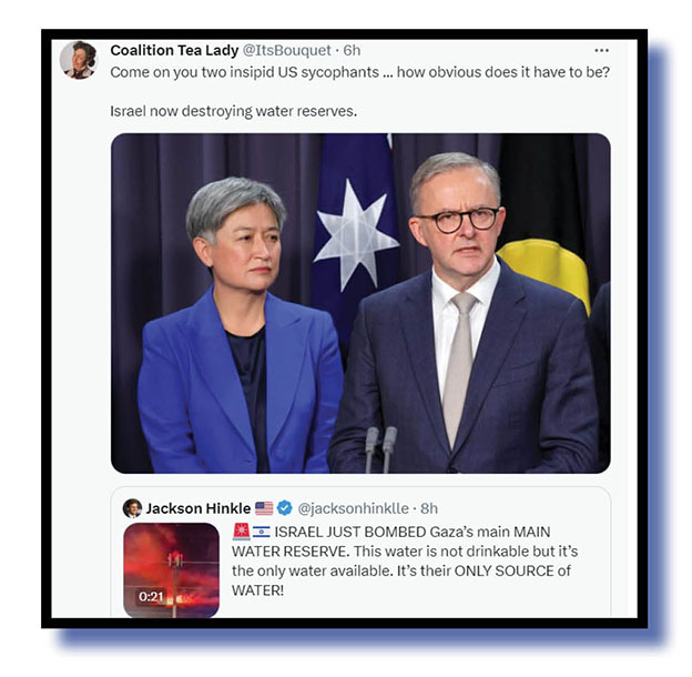 But we are heartened by the depth of feeling over the war crimes being constantly committed by Israel in the Palestinian enclave (yes, and it’s here that we insert the obligatory comment that the attacks into Israel at the start of October by Hamas were totally repulsive, cowardly and inhumane) and it gives us hope that maybe, just maybe, Australia is not quite as Zionist as Johnson, Morrison and Peter Dutton hope it is.