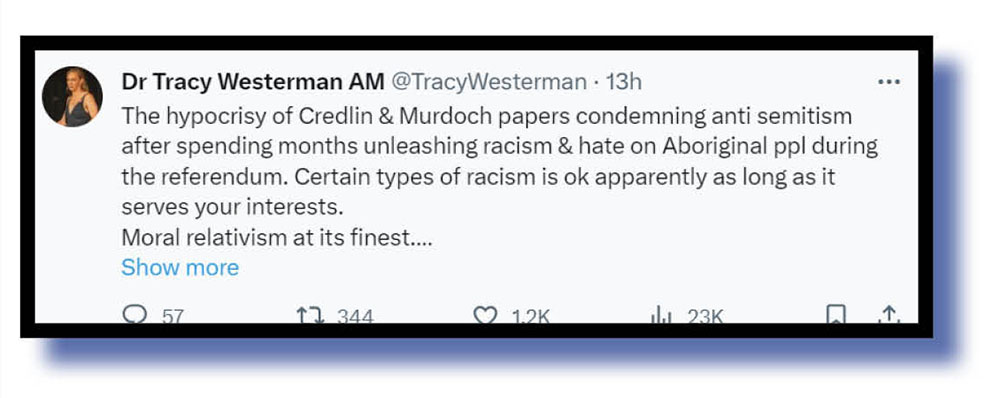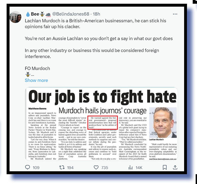 Before we leave matters concerning The Dirty Digger and his even more rightwing son (yes, that’s an almost unbelievable state of affairs, isn’t it?) here’s Dr Tracy Westerman AM making a very solid point.