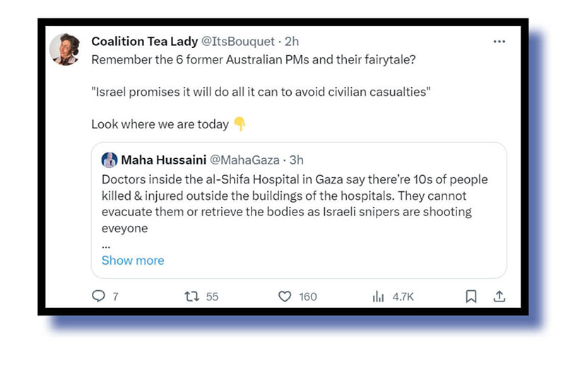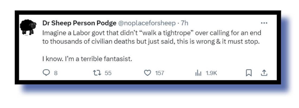 Okay, back to the nasty stuff and Israel’s ongoing genocide in Gaza. This column mentioned last week that slightly more nuanced comments from PM Albanese and his foreign minister Penny Wong had given hope that maybe Oz isn’t as Zionist as the Voice vote showed it to be racist.