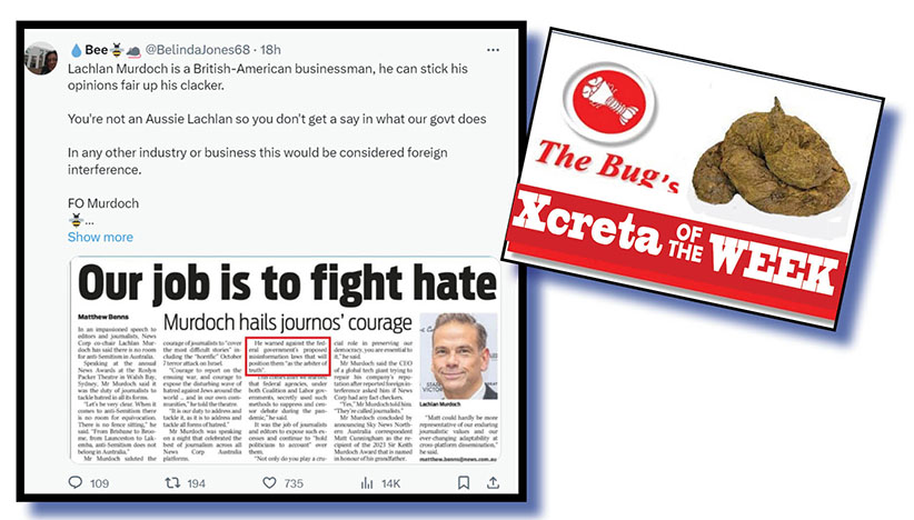Our only advice to Bee would have been to dare Lachlan to shove his dad Rupert up his arse first and then his opinions if there was enough room left.
