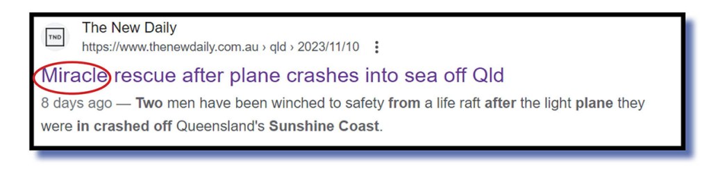 Speaking of miracles, here’s a recent online piece from The New Daily about that plane crash off the Sunshine Coast on November 10.