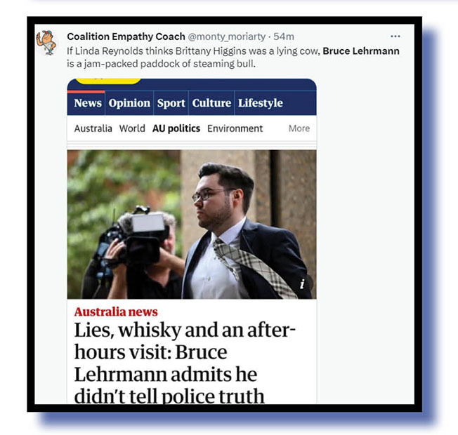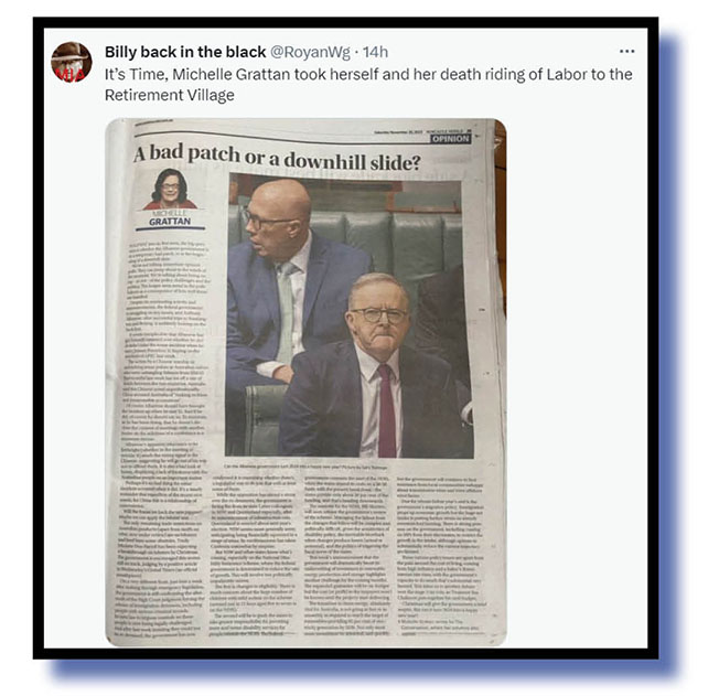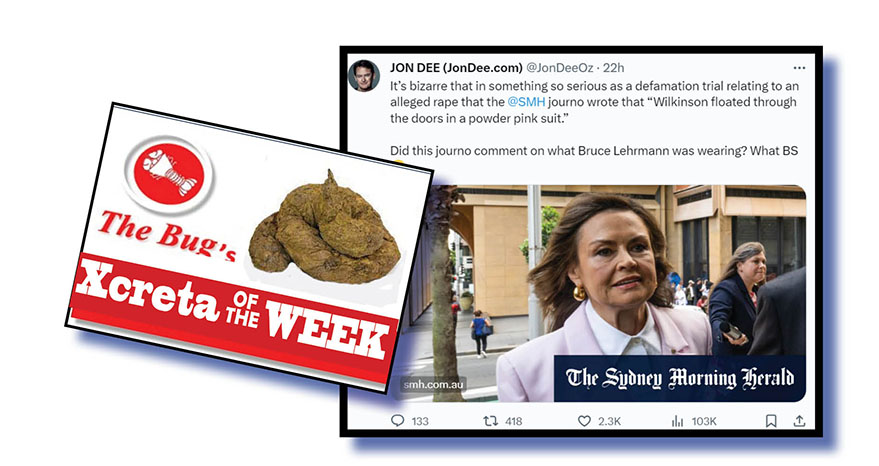 On politics generally, Peter Klages xcreted on the weekend news of Dave Sharma’s return to federal politics and Billy back in the black offered Michelle Grattan some career advice, with which The Bug could not agree more.