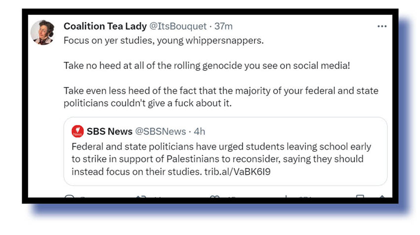 And before we leave the Middle East, here’s Coalition Tea Lady with some sensible advice for students.