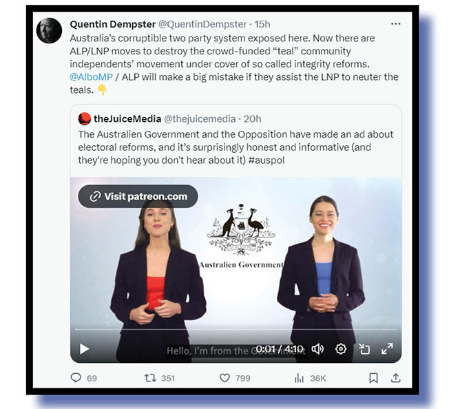 Quentin Dempster served up a powerful warning to federal Labor if it joins with the LNP to puch through proposed electoral “reforms”.