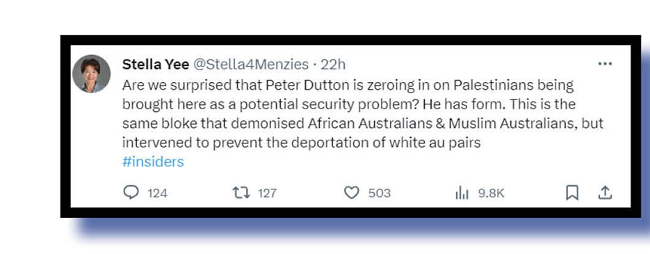 Stella Yee roped in Peter Dutton to the general Israel/Hamas conflict debate and exposed his usual dog-whistling ways that he’s clearly unlikely to change given the Newspoll results overnight.