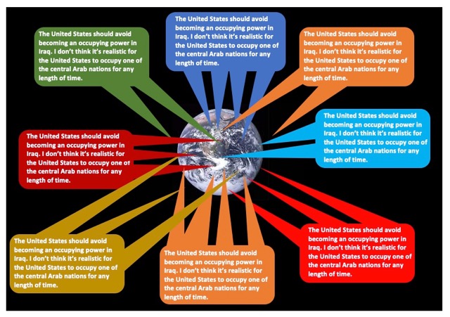 The only other view that seemed to have stronger support was that the US simply shouldn’t invade Iraq at all as old Saddam Hussein, although a grubby textbook murderous dictator, had fuckall to do with the 9/11 attacks.