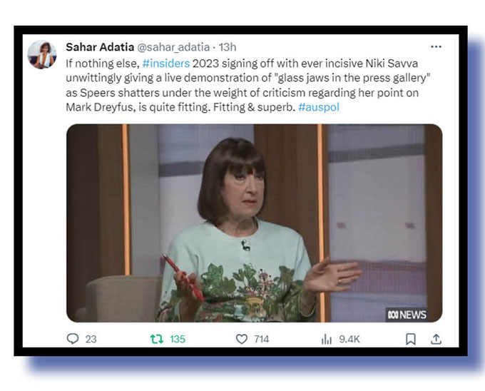 And seeing Insiders got a mention above, let’s finish with another burning issue raised by Insiders host David Speers – just exactly how naughty was Attorney-General Mark Dreyfus in responding to a SkyNews ‘journalist’ over the High Court refugee decision.