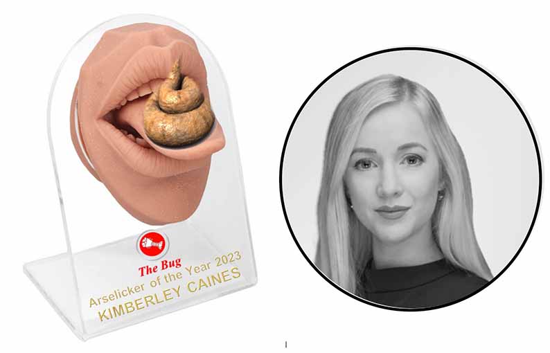 The Bug’s Media Glass House Arselicker for 2023 is – extended drum roll please – Kimberley Caines!