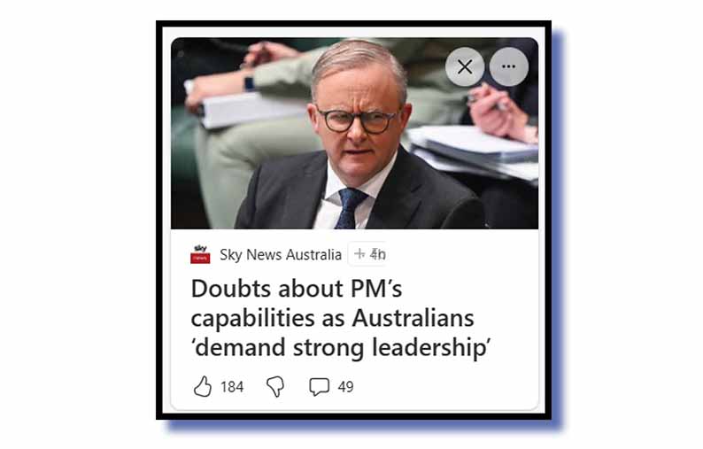 And exactly who is it that has doubts about the PM’s capabilities as this Sky News Australia teaser points out, with the clear inference that Albanese lacks the strong leadership needed to see Oz though the challenges ahead?