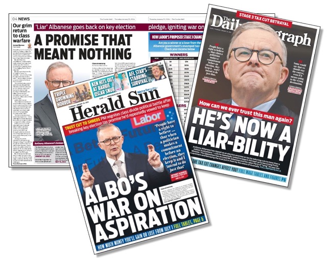The Liberal Party wasted no time this week splurging on expensive full-page, front-page advertisements attacking the Albanese Government’s plans to amend legislated tax cuts for high-income earners.