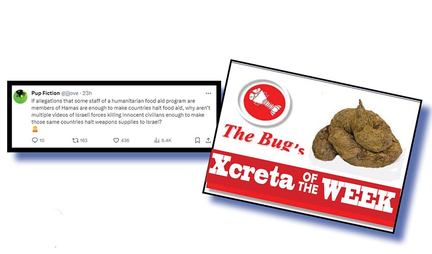 Before we delve into this week’s Xcretas-of-the-Week column and our judges’ pick, can we at The Bug just say we have no fucking idea just how naughty the United Nations Relief and Works Agency has been in its task of Gaza’s biggest humanitarian aid provider.