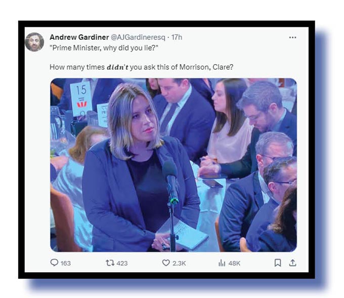LNP publicist Clare Armstrong’s stinging attack on Albanese at the National Press Club last week sparked these responses from The Emperor’s Old Tailor and Andrew Gardiner.