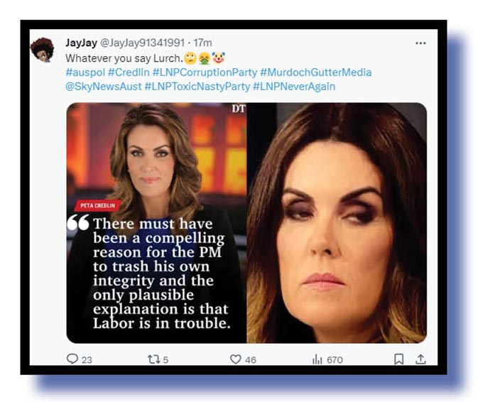 JayJay and Billy back in the black roped in Peta Credlin for criticism…