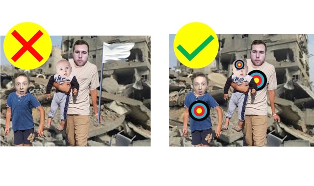 “Our message to Palestinians in Gaza is that it will be a big help to the IDF if they wear the patches rather than wave white flags.